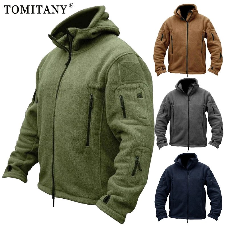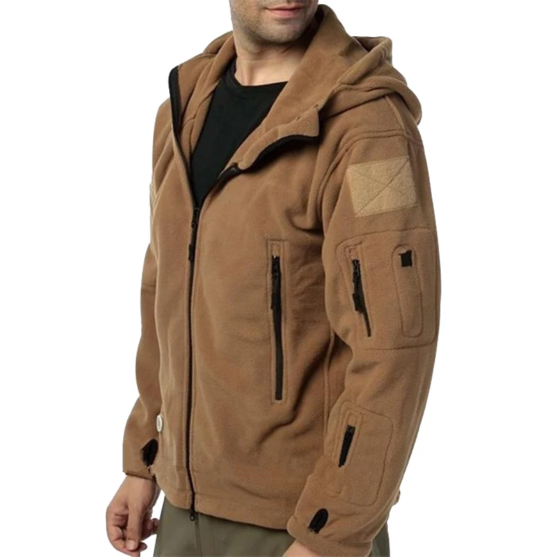 Мужская Военная флисовая куртка с капюшоном, теплая уличная куртка ...