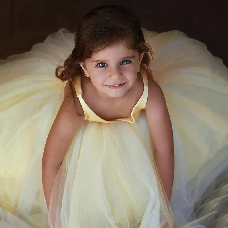Простое желтое аниме платье принцессы для девочек с цветами, платье на день рождения, пышная юбка, платье для первого причастия