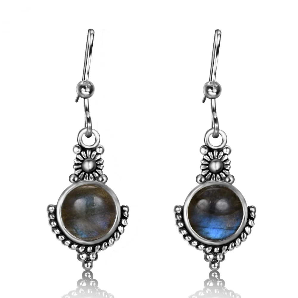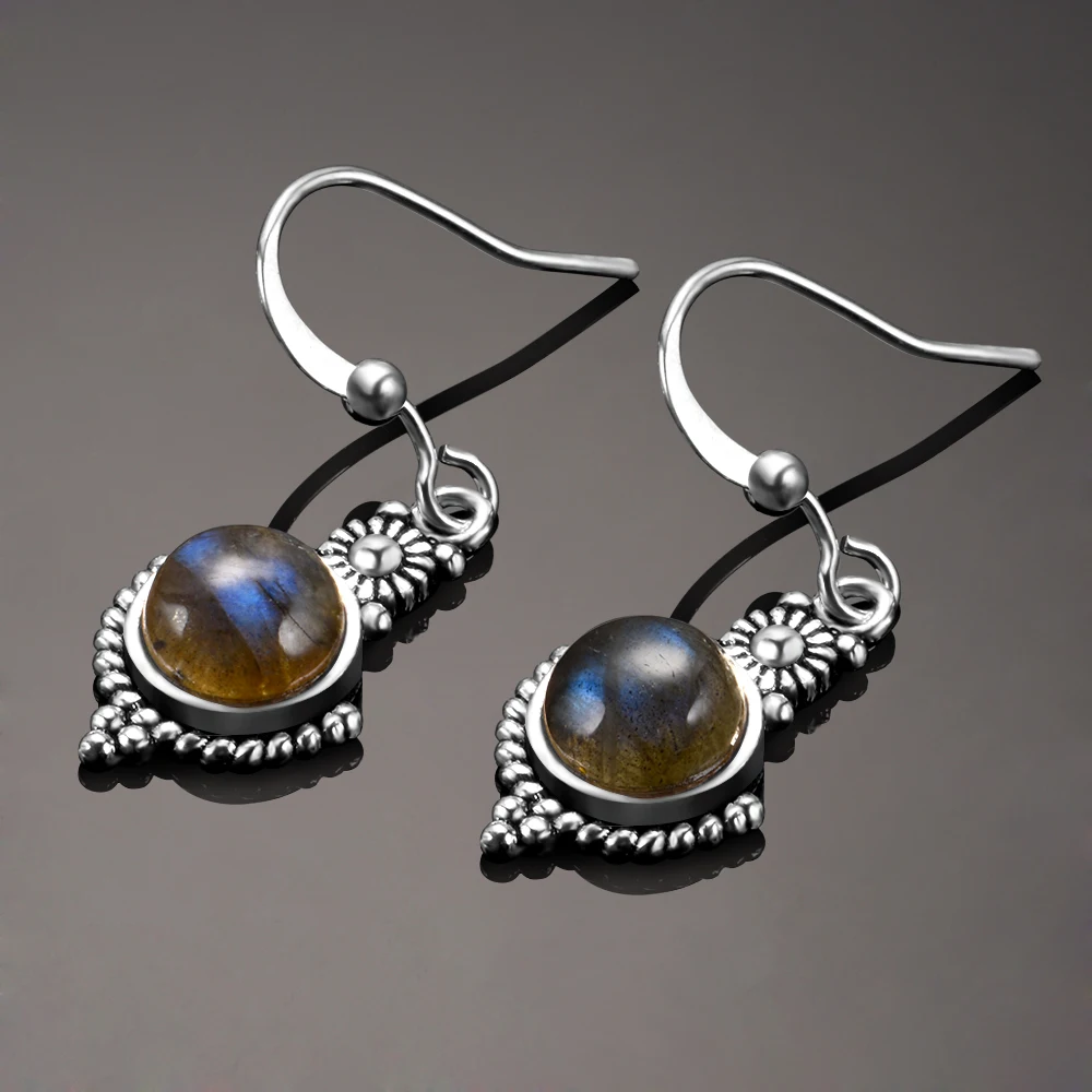 Женские серьги из натурального Лабрадорита в винтажном стиле