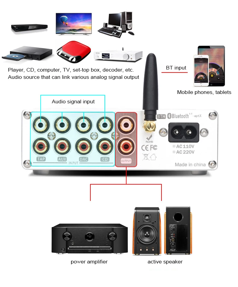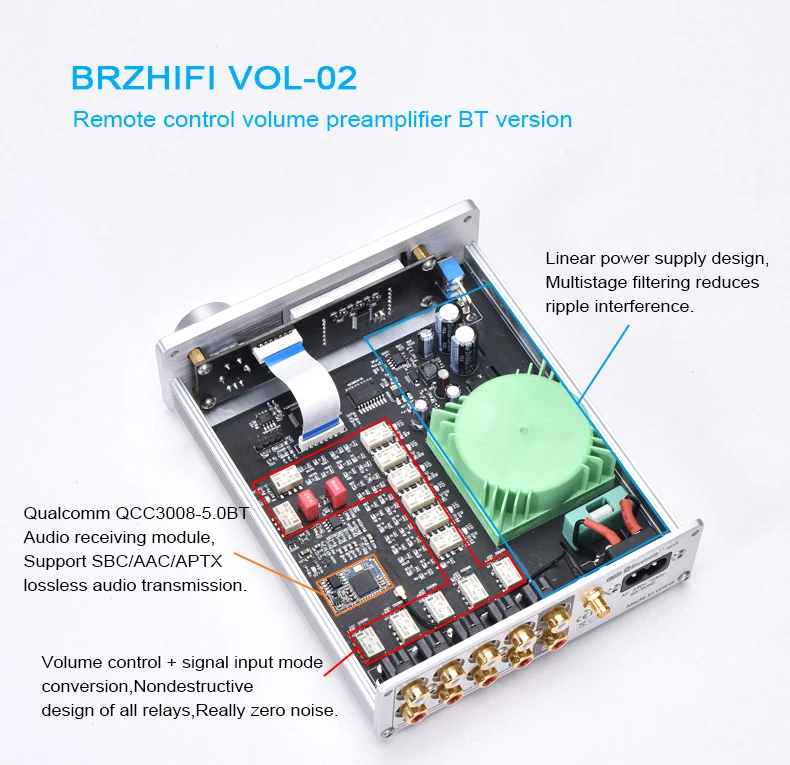 Предусилитель BRZHIFI VOL02, Bluetooth 5,0, QCC3008, HiFi цифровой аудио усилитель для усилителя мощности, активные динамики, поддержка SBC AAC APTX