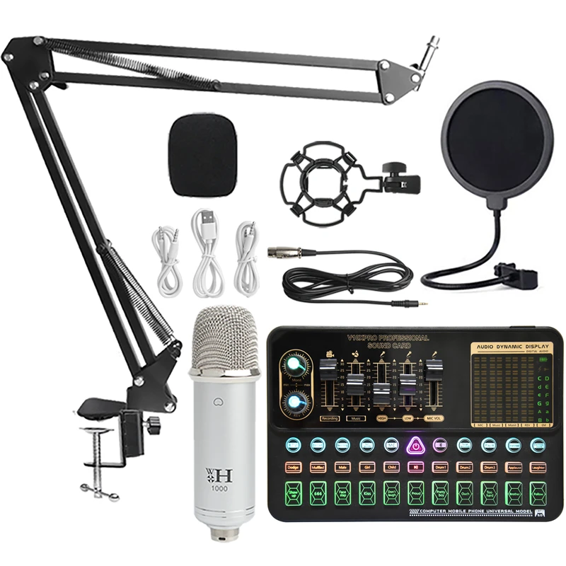 Конденсаторный микрофон в комплекте со звуковой картой и регулируемым микрофоном, подвесной ножничный рычаг, профессиональный студийный беспроводной микрофон для караоке