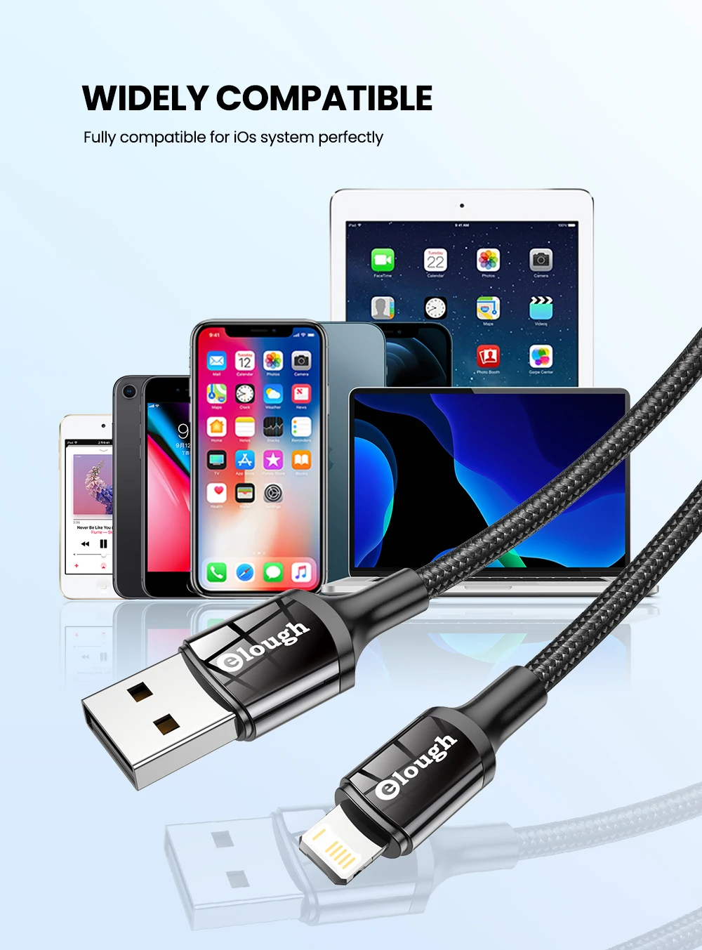 USB-кабель Elough для iPhone 13, 12, 11 Pro Max, Xs, XR, X, 8, 7, 6...