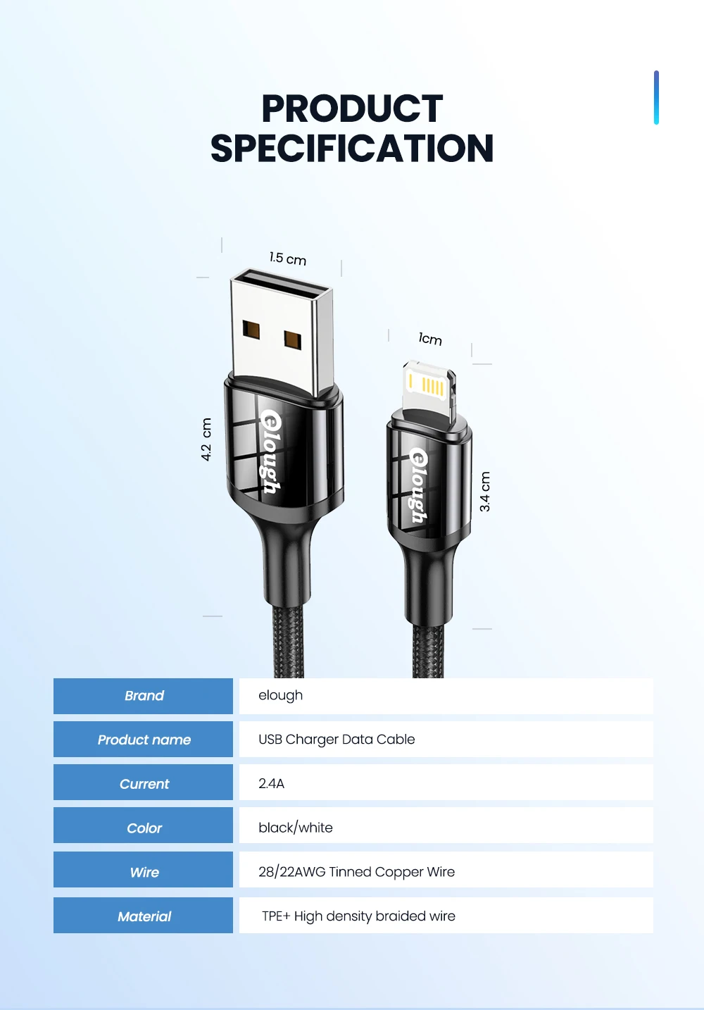 1. Название товара: usb-кабель для передачи данных для iphone2. Ток: 2.4A3. Цвет: черный/белый4. Материал: TPE + плетеный провод высокой плотности5. Размер:USB разъем: 4,2 см x 1,5 см (1,65x0,59 дюймов)USB Type C СОЕДИНИТЕЛЬ: 3,4 см x 1 см (1,34x0,39 дюймов)6. Характеристики: быстрая зарядка QC 3,0/зарядка + передача данных 2 в 1/Высококачественная джинсовая плетеная/полностью совместимая с системой iOS