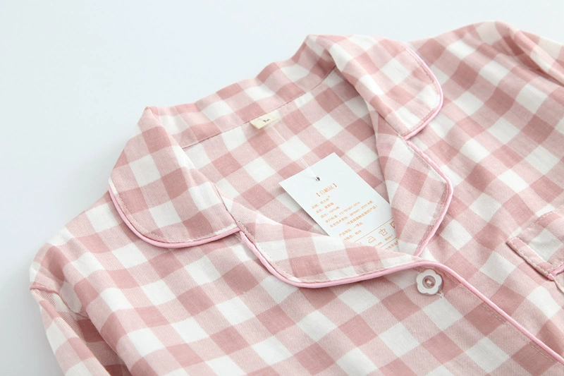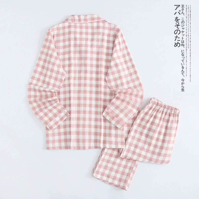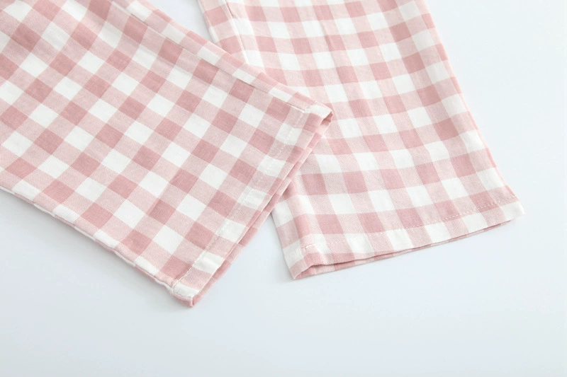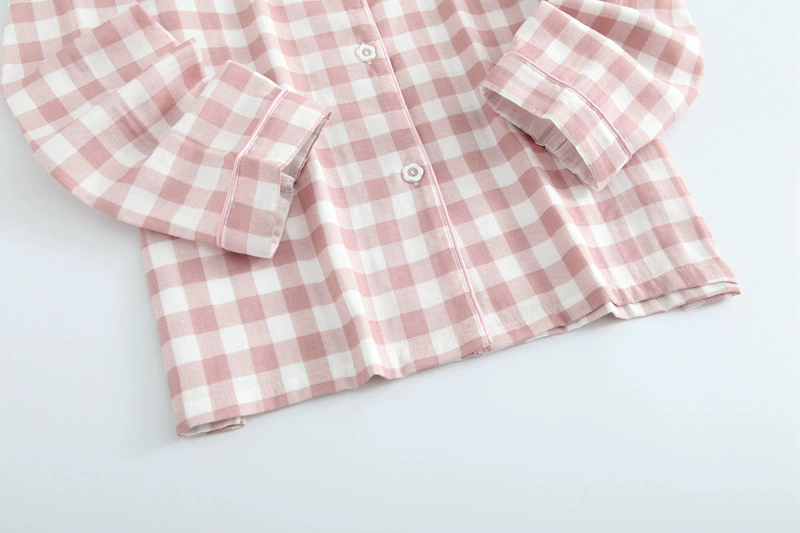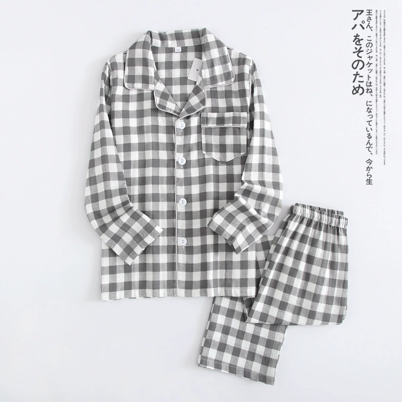 Весенне-осенние клетчатые Пижамные комплекты для родителей и детей хлопковые комплекты из двойной марли с длинными рукавами для детей и женщин