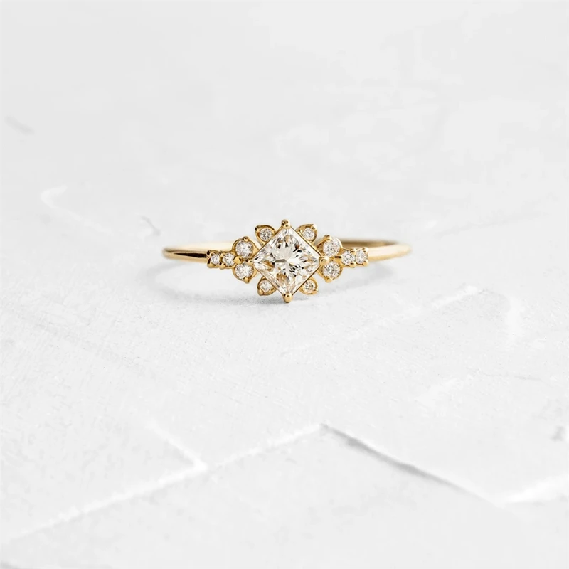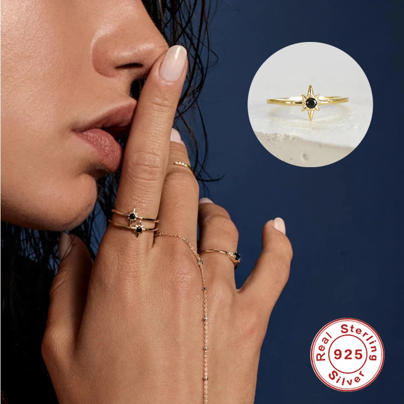 Женское кольцо из серебра 100% пробы, с квадратным черным бриллиантом