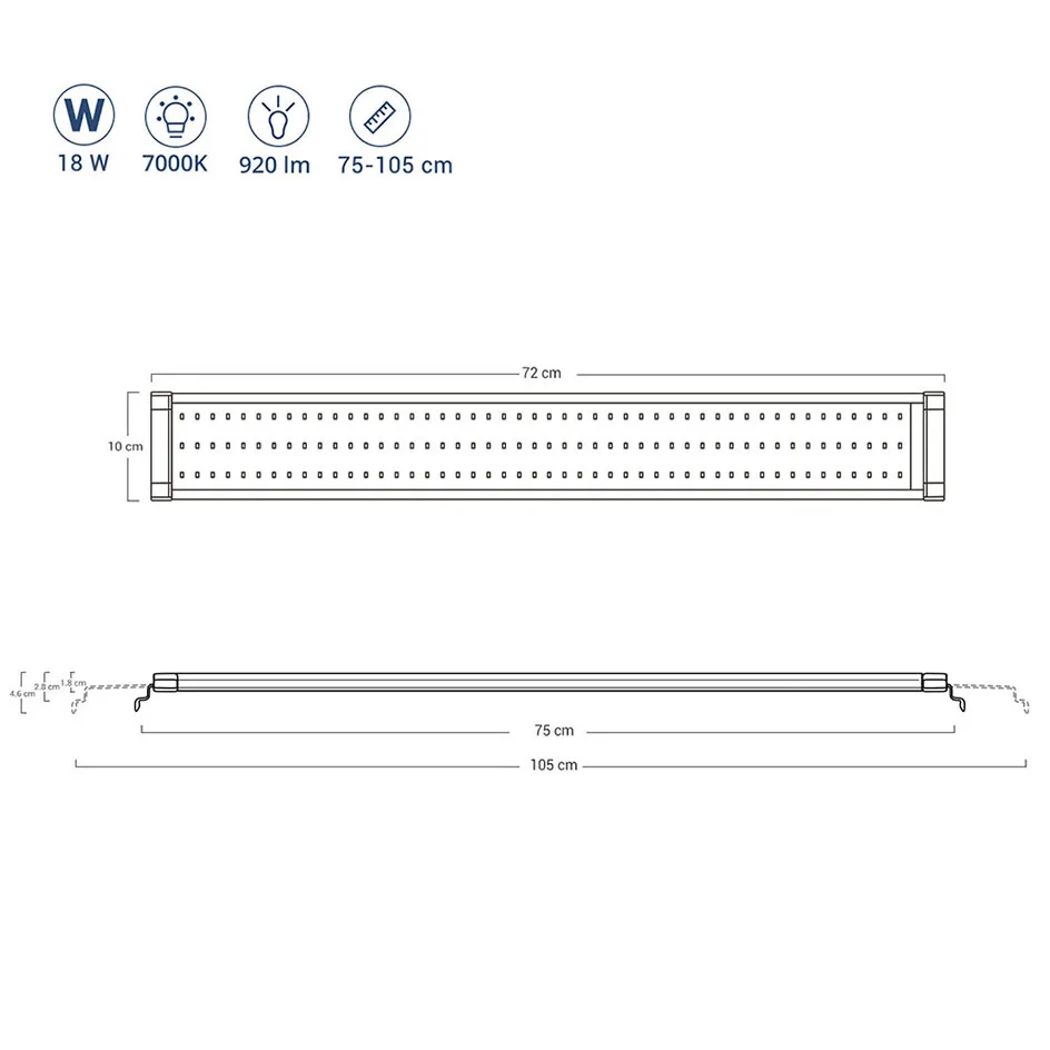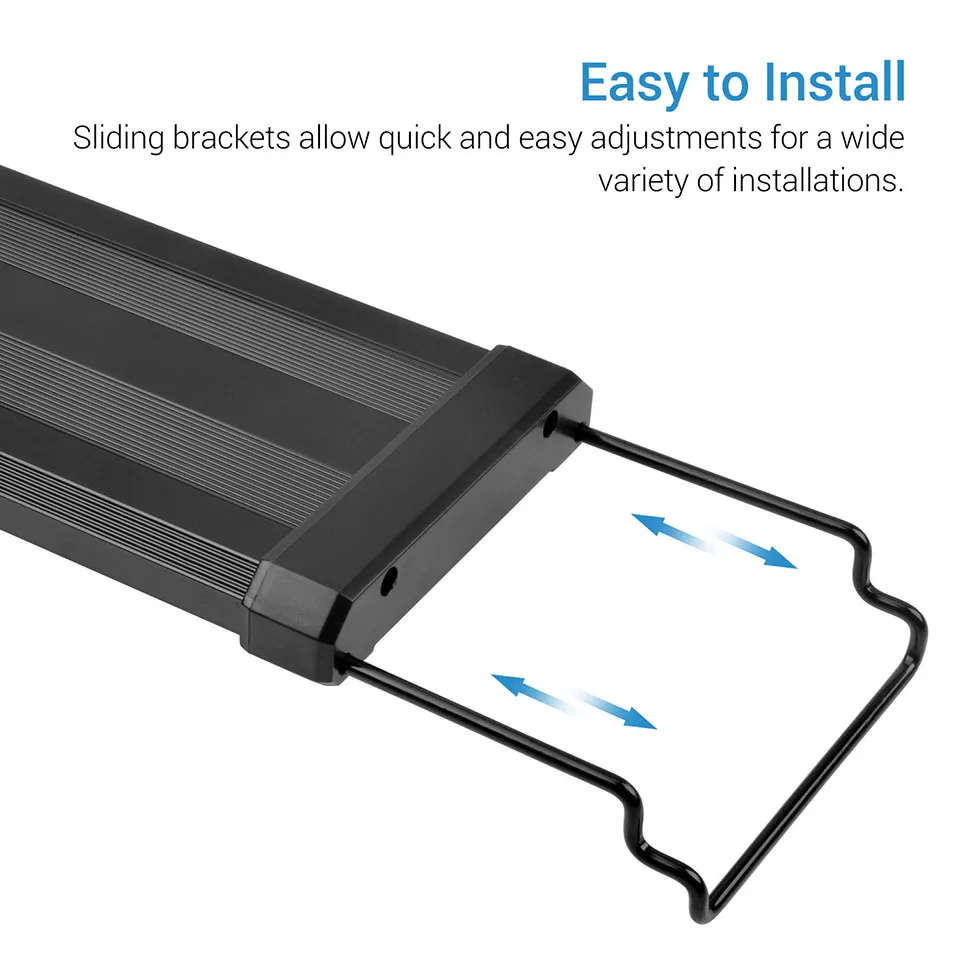 1. Два режима освещенияБелые и синие светодиоды для дневного света и синие светодиоды для ночника2. Регулируемые монтажные ножкиРегулируемые крепежные ножки обеспечивают гибкость в установке длины аквариума. Эта система также делает добавление нескольких приспособлений оснасткой.3. Светодиоды высокого качестваСупер яркие белые светодиоды и синие светодиоды сочетаются в удивительно гладком приспособлении, которое набрано для пресной воды в водной среде, как ничего раньше.4. Лучшее рассеивание теплаИзготовлен из алюминия, а не пластика, более прочный и лучший при проведении тепла.5. Можно использовать диммерИмитирует восход и закат для вашего aruaqium