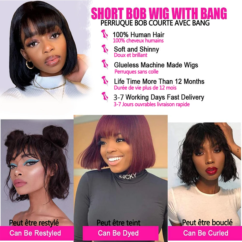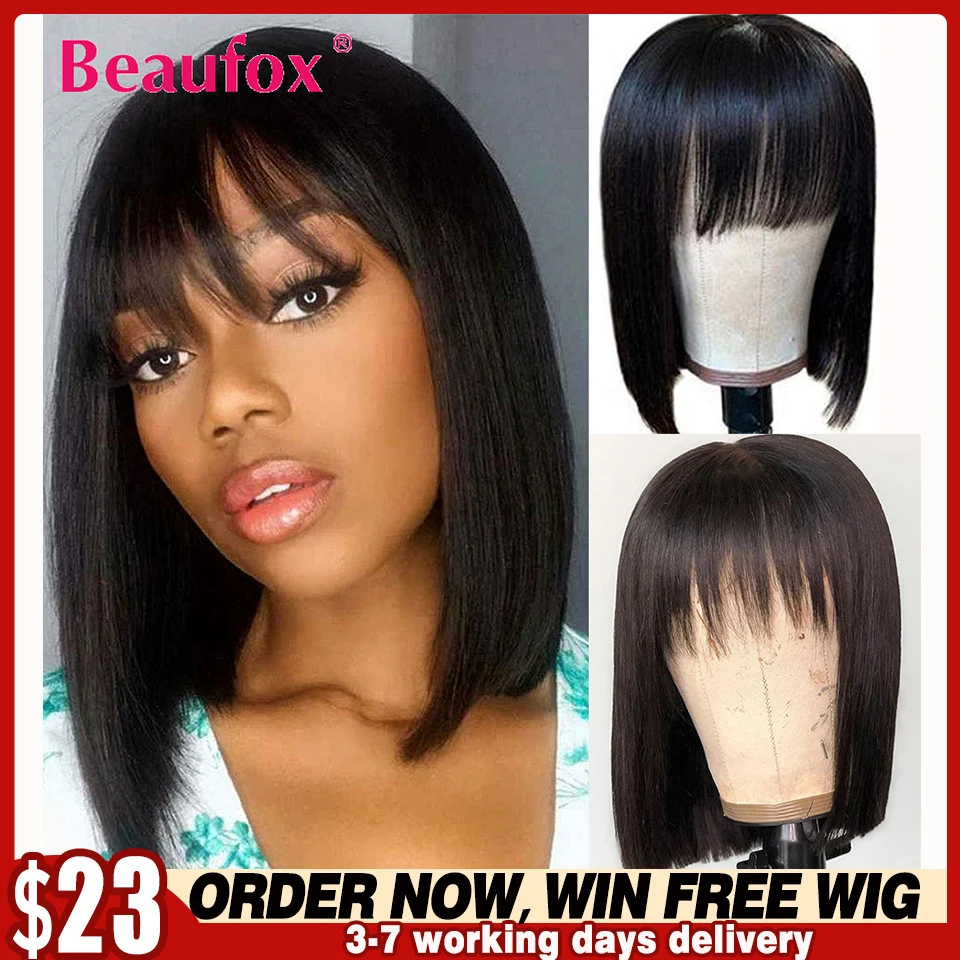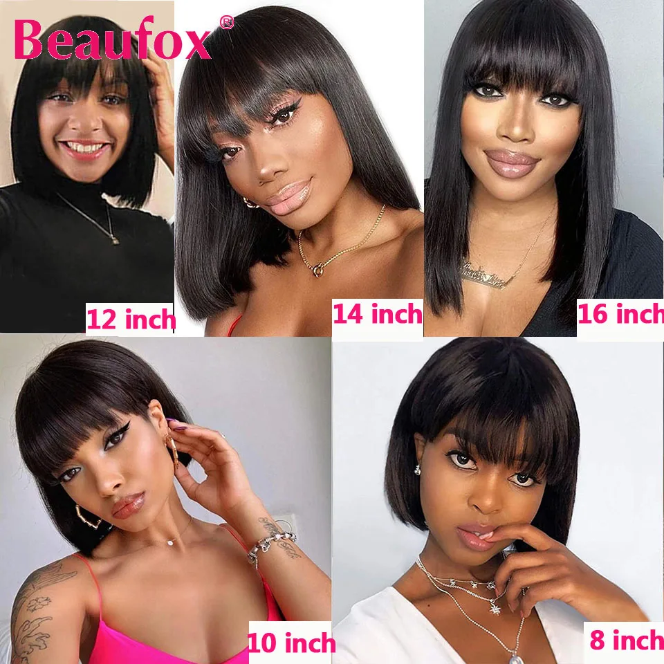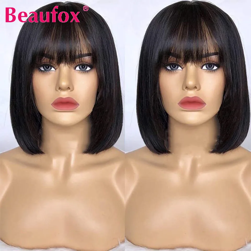 Парик Beaufox с прямыми волосами Боб, парики из бразильских человеческих волос для женщин, короткие парики боб, человеческие волосы, полностью автоматические безклеевые парики