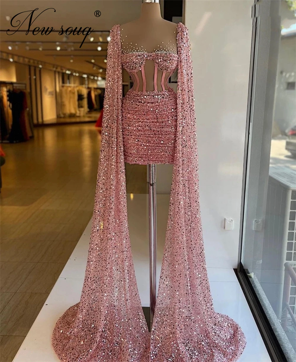 Индивидуальные розовые вечерние платья с блестками 2021, халаты, короткие платья для выпускного вечера с бисером Дубая, Арабская одежда для вечеринки, платье для второго приемника