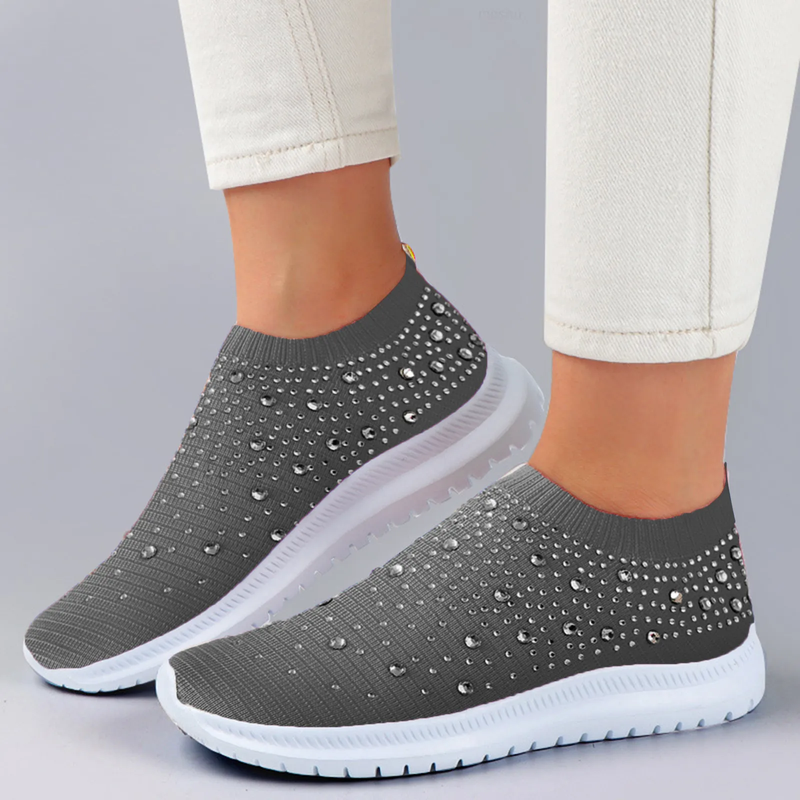 Женская спортивная обувь для женщин; Кроссовки со стразами; Повседневная обувь без застежки; Обувь из сетчатого материала