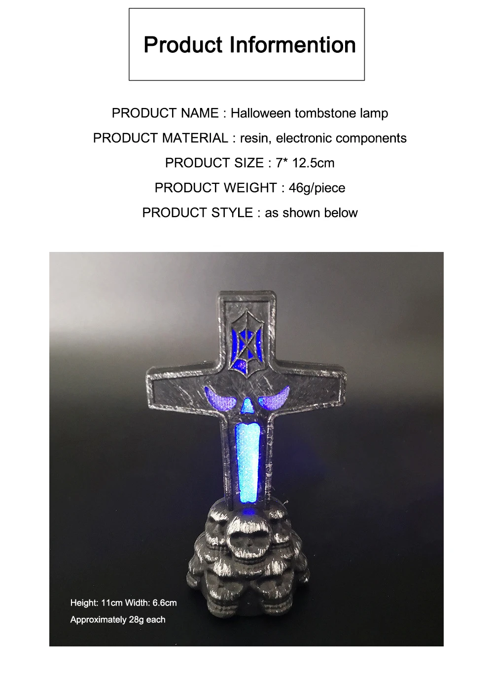 Хэллоуин, надгробие, крест, светильник свет, фестиваль, вечеринка, атмосферное украшение, домашний бар, столовая, ретро, имитация, подставки