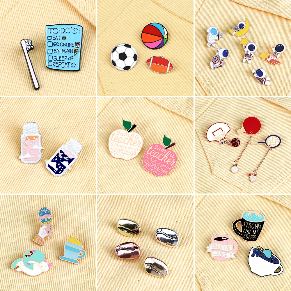 2-6 шт.лот, эмалированные булавки с героями мультфильмов, милый астронавт, Волшебная бутылка, кофейные броши, детские спортивные нагрудные значки, ювелирное изделие, подарок, новинка