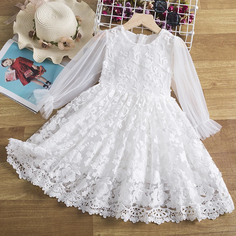 Осенние платья для девочек, осенняя одежда, детская повседневная одежда для вечеринок, однотонное платье с цветочной вышивкой, одежда для принцессы
