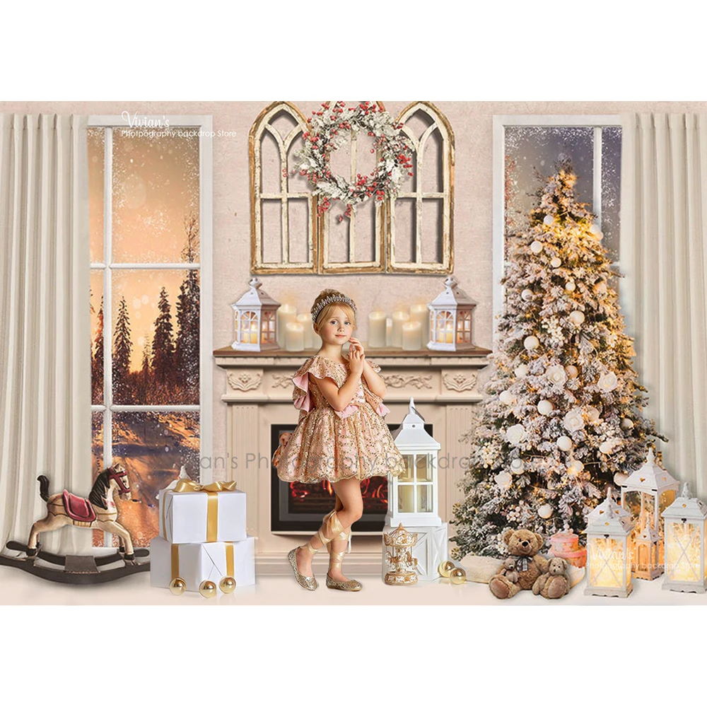 Фон с рождественской елкой камином для детской семейной фотостудии