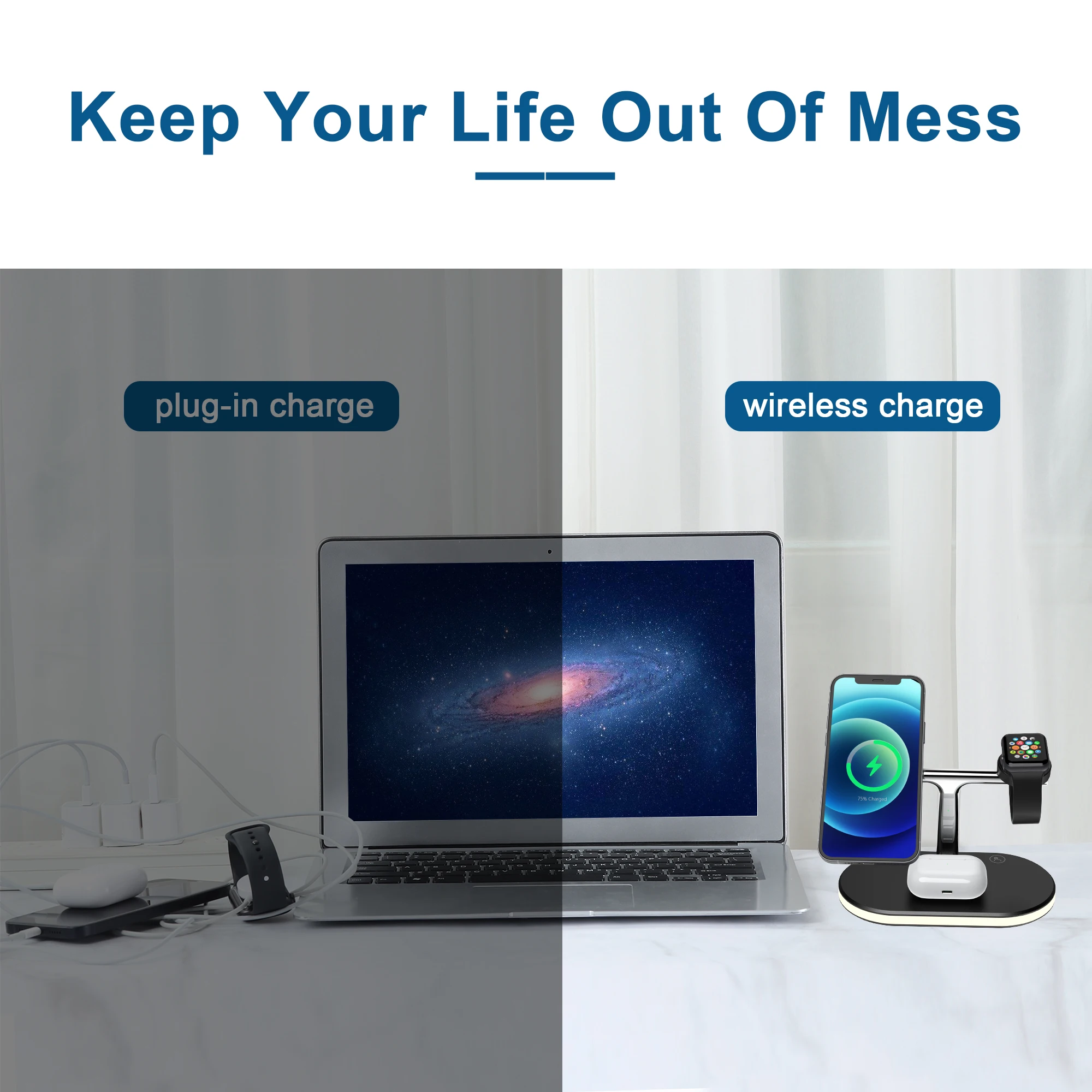 ● Поддержка PD и QC3.0 протокол быстрой зарядки● Поддержка всех беспроводных зарядных устройств Qi● Он может заряжать ваш телефон, AirPods и Apple Watch одновременно● Небольшой светодиодный светильник с сенсорным управлением● Зарядный отсек для наушников поддерживает наушники char-he ging, а также 5W Мобильный телефон для зарядки