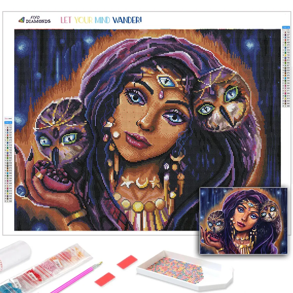 Алмазная живопись сделай сам, созвездия, портрет ведьмы, девушка, в...