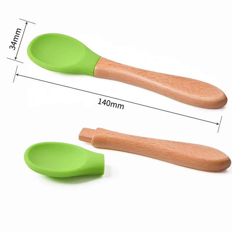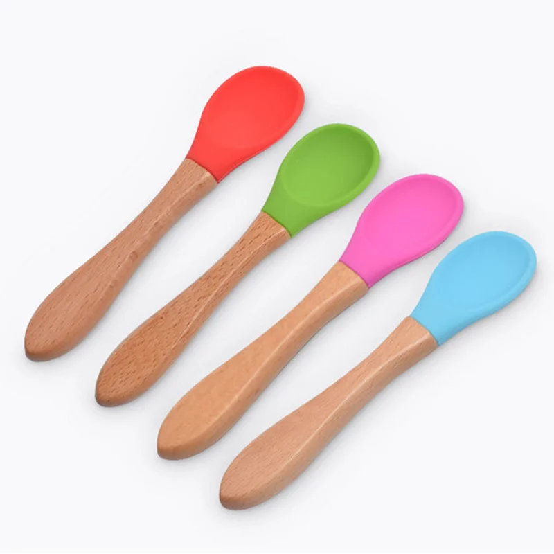 2 шт., мягкая силиконовая ложка для малышей, яркие цвета, безопасная детская обучающая деревянная вилка, нескользящая ложка для детей, для мальчиков и девочек, инструмент для кормления