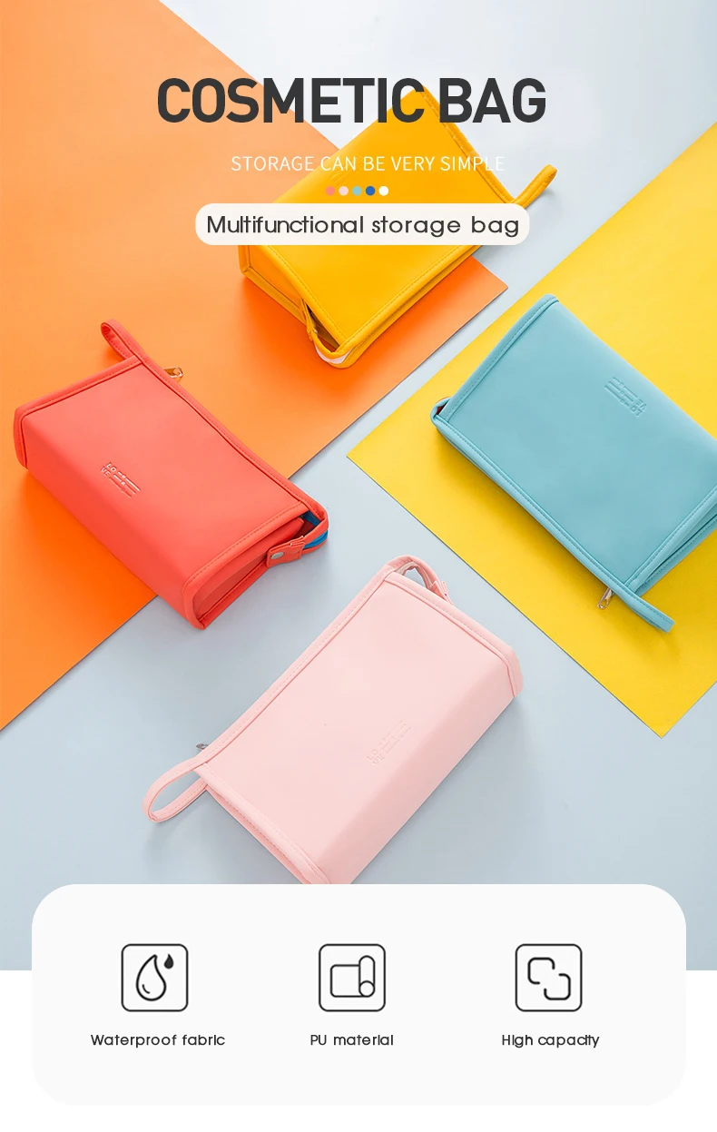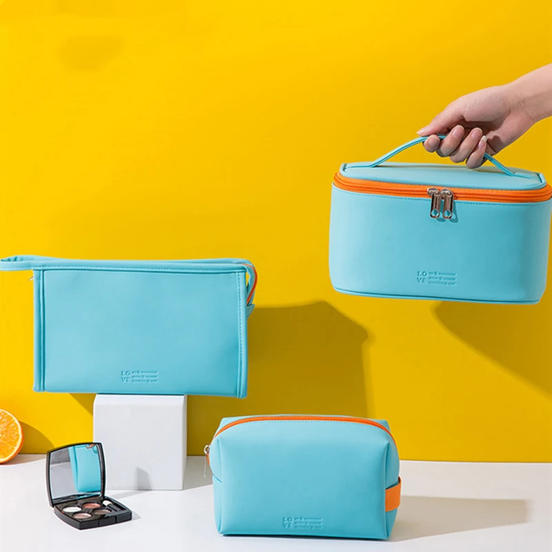 Новинка 2021, Женский чехол для макияжа карамельных цветов, кожаная косметичка, водонепроницаемая дорожная большая сумка на молнии для макияжа, сумка для мытья туалета