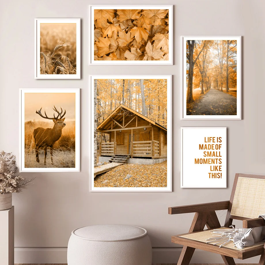 Осенняя Гора дорога озеро олень лес листья настенный художественный...
