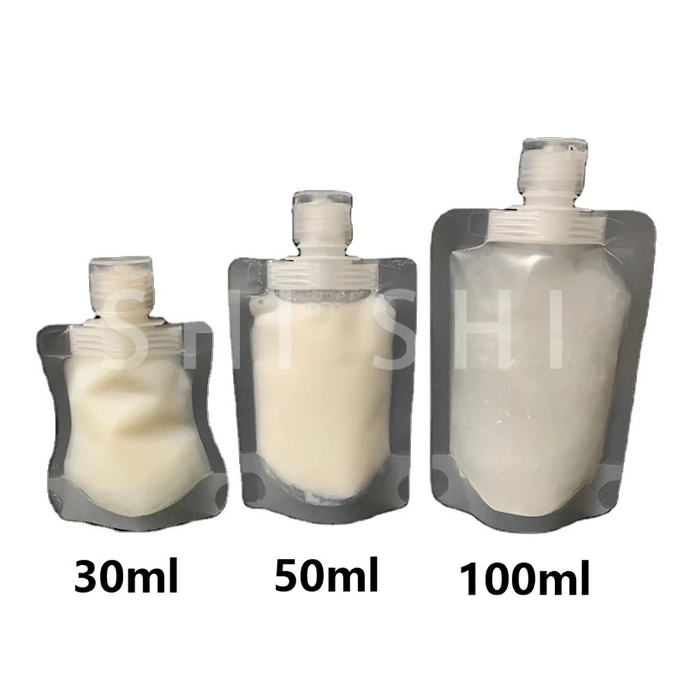 10 шт. дорожный многоразовый раскладной упаковочный пакет, пустой Сжимаемый пластиковый мешок с носиком для шампуня для лосьона 30 мл 50 мл 100 мл