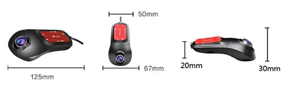 Технические характеристики1. Разрешение записи: 1920*1080(30 кадров в секунду)2. Объектив: 170 °/6G/F = 1,83. Формат видео: MOV4. Формат изображения: JPG5. Внешняя карта Micro TF (макс. 32 г)6. Напряжение: 12 В7. Размер продукта: 125*67*30 мм8. Вес нетто: около 250 г9. Подключение: кабель ACC