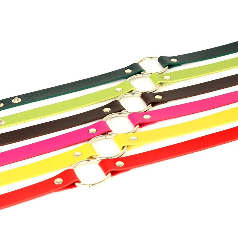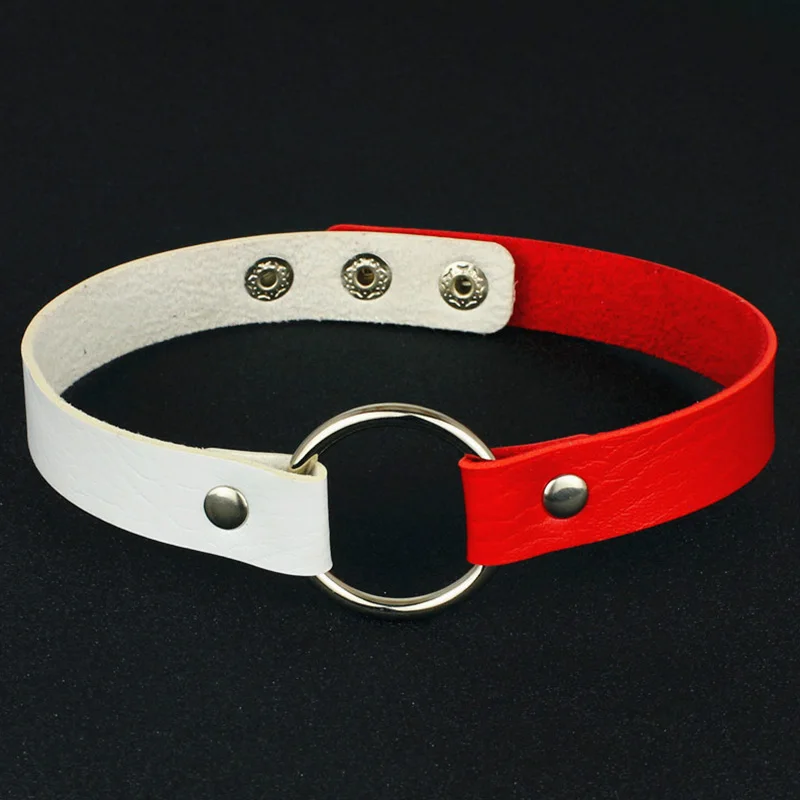 Ожерелье женское кожаное в готическом стиле с круглой пряжкой