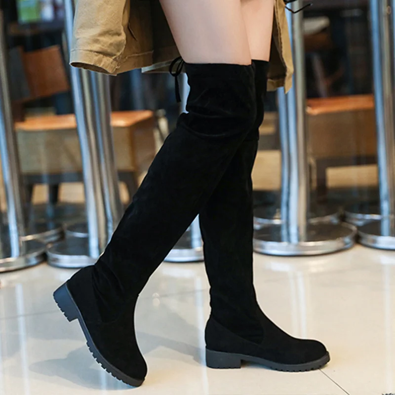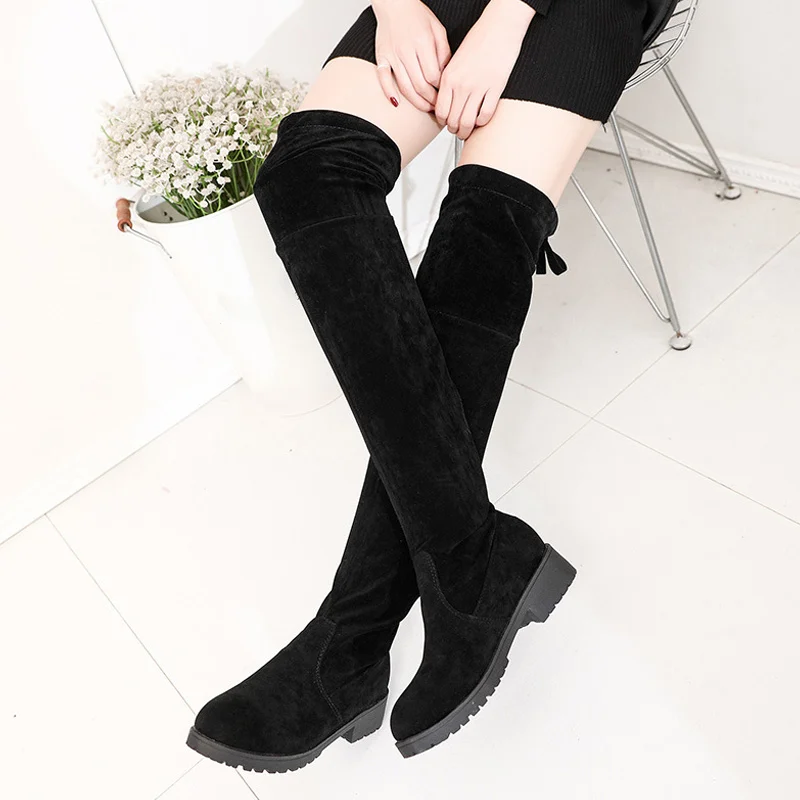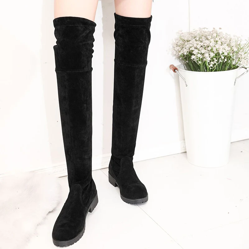 Женские сапоги; Зимние женские Сапоги выше колена из флока; Женские пикантные высокие сапоги в сдержанном стиле; Женская обувь; Новинка зимы