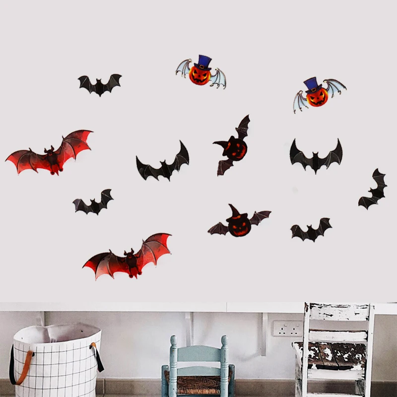 12 шт Хэллоуин украшения ПВХ Тыква наклейки на стену 3D трехмерное украшение летучая мышь наклейки Хэллоуин украшение