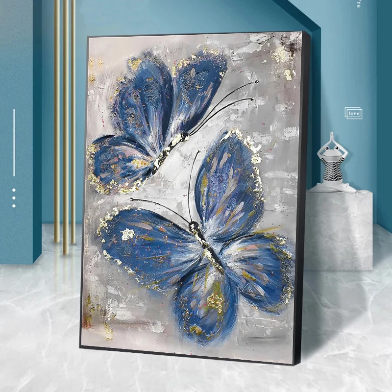 Золотая синяя бабочка декоративная живопись абстрактная бабочка пла...