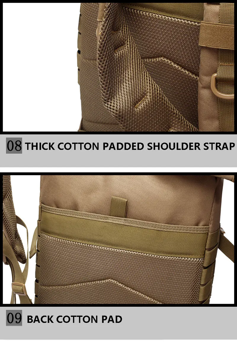 Стиль: спортивныйМатериал: нейлон 1000DЦвет: хаки, серый, камуфляж, зеленый, черный, камуфляжный зеленый,Емкость: 50 лРазмер: 50*30*30 смЭто изготовленная нейлоновая ткань, высокая интенсивность и долговечность.Просторный основной отсек с застежкой-молнией вокруг, внутренний карман на молнии и сетчатый карман.Передние отделения на молнии для хранения.Возьмите верхнюю ручку.Мягкие и регулируемые плечевые ремни.Боковые компрессионные ремни.Регулируемый и съемный нагрудный ремень и ремень на бедрах.Дышащая сетчатая подкладка для комфорта.Застежка-липучка на спине для совместимости с гидратацией 2L.Характеристики:Тип товара: рюкзакиТип рюкзака: софтбэкИспользование рюкзака: Обычный кемпинг и туризмПол: унисексТип застежки: молнияТип узора: однотонныйПовод: на открытом воздухеПосылка:1 рюкзак для улицы