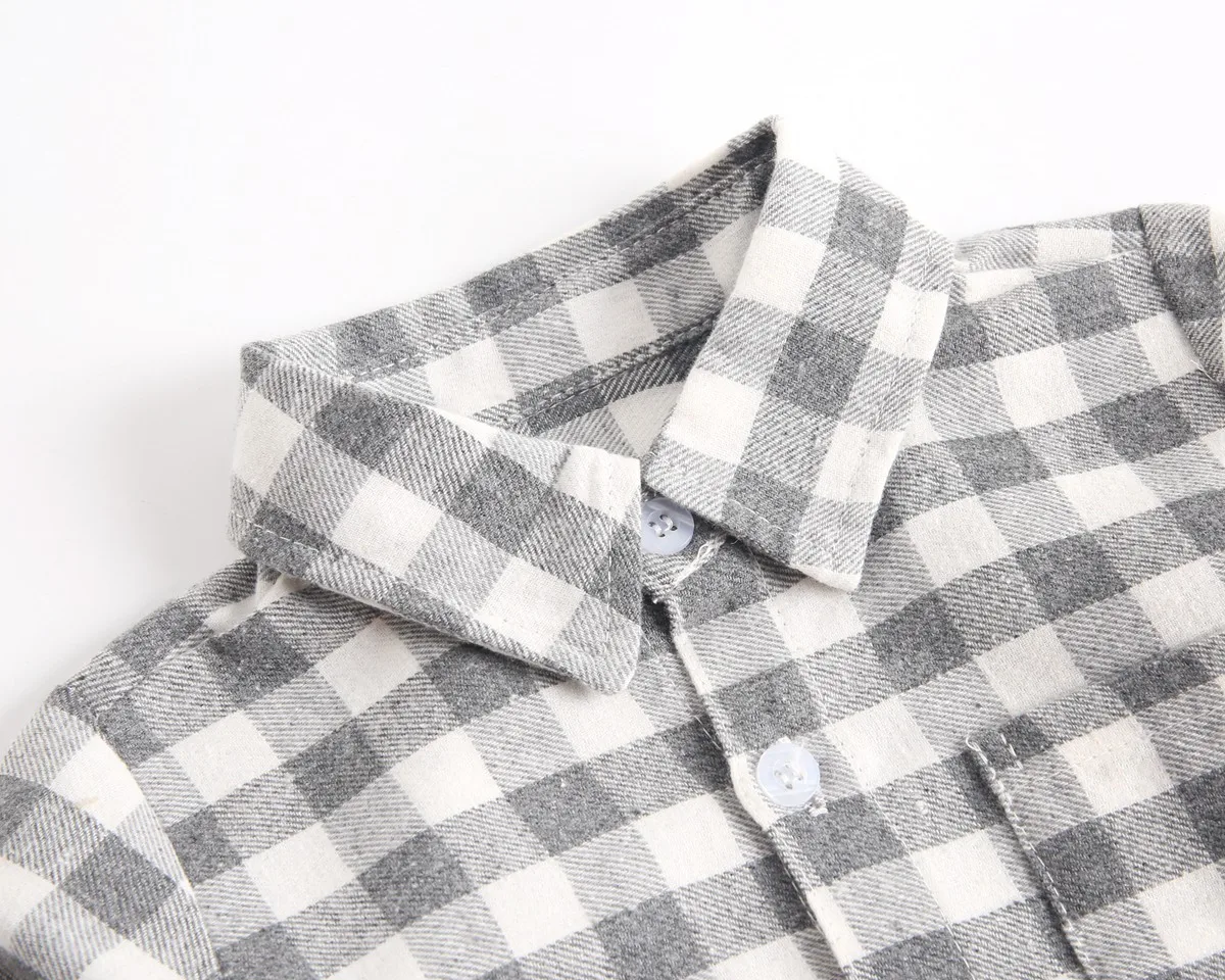 Комбинезон клетчатый с длинным рукавом и отложным воротником, на веснуосень