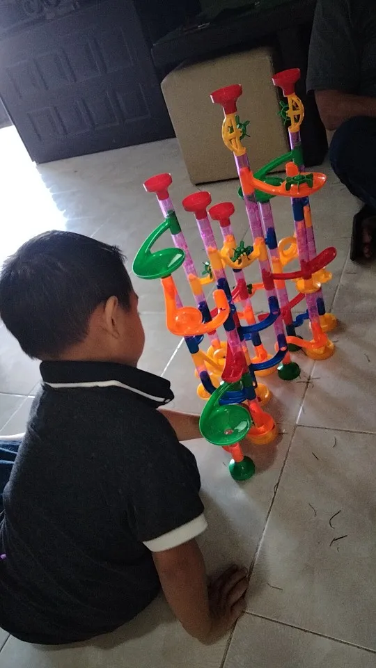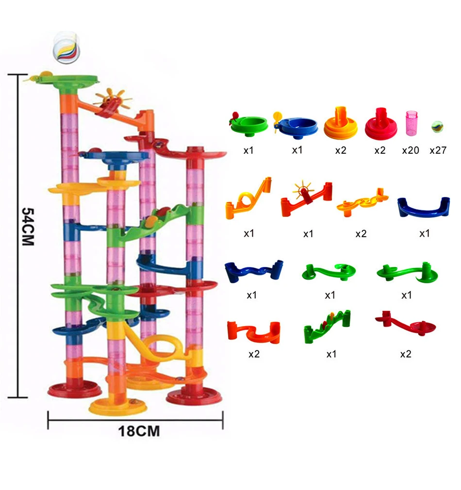 DIY Конструкция мраморная гонка бег лабиринт трек строительные блоки детские Мячи игрушкиСверкающее воображение ваших детей-Мраморная гоночная трассаЭта мраморная гоночная игрушка просто потрясающая! Строительные блоки «сделай сам» из 105 шт.-хорошая обучающая игрушка для вашей семьи. Мраморная гоночная трасса-отличный предмет, чтобы научить маленьких детей об импульсе и свойствах тяжести через мрамор, Бегущий по трассе. Вы можете собрать их вместе по своему усмотрению, чтобы позволить вашим детям каждый раз создавать блоки по-разному с их воображением. Это отличная игра для вашей семьи.