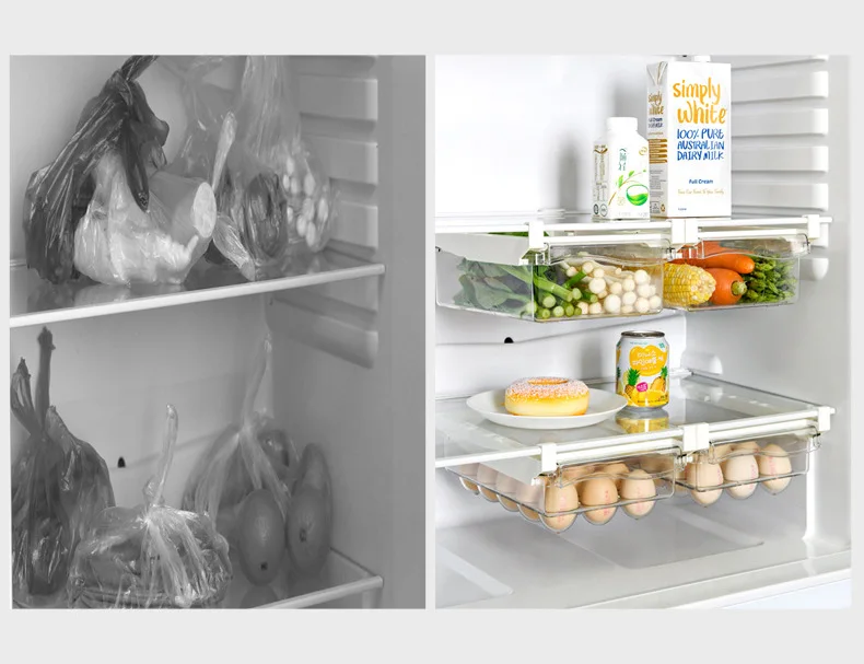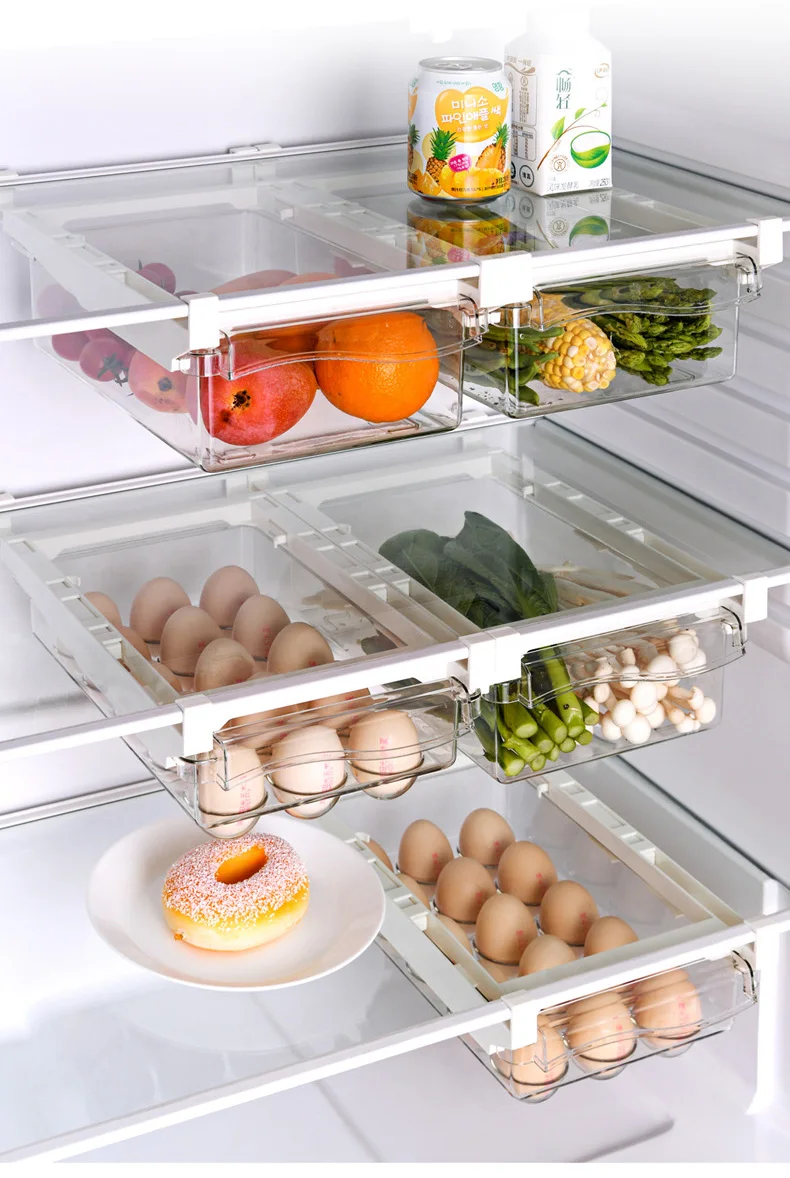 Function 4Plastic Clear Fridge Organizer Slide Under Shelf Drawer Box