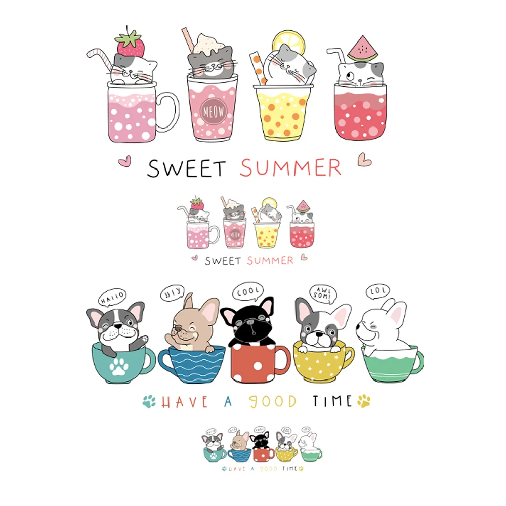 Термонаклейка на одежду с изображением мультяшных собак и кошек