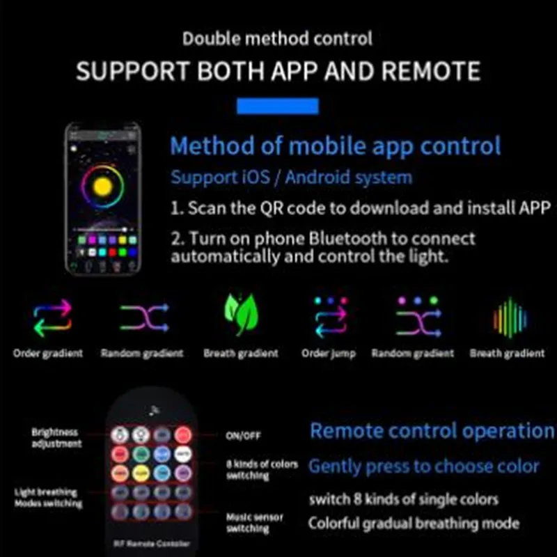 RGB Автомобильная интерьерная акриловая полоска, окружающий светильник, сенсорное приложение, Bluetooth контроль, атмосферная лампа, беспроводное автономное соединение