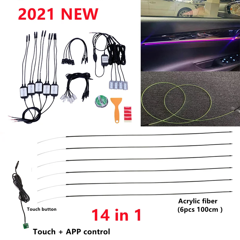 Светодиодная RGB лента 6 в 1 для интерьера автомобиля, акриловая во...
