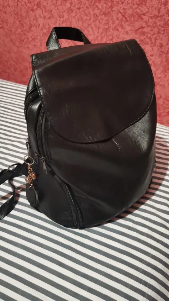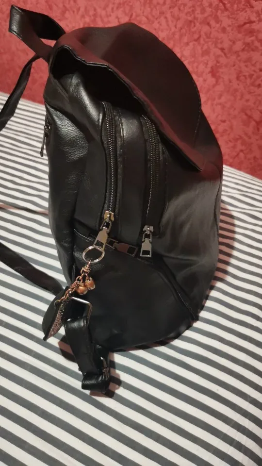 Рюкзак на фото,если его не забивать полным. Качество: тонковат,искусственная кожа не мягкая, становится колом на морозе,но не лопается. Прошит очень хорошо,нитки нигде не торчат.Пользуюсь пока неделю. Цена-качество равны. Отправление шло около месяца,3 недельки примерно. Удобный. Спасибо продавцу.На лето вообще супер,таскать барахлишко.