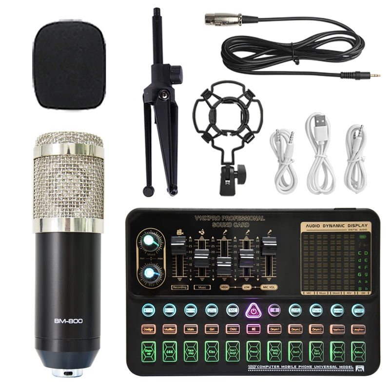 Профессиональный Студийный конденсаторный микрофон Bm 800, штатив, микрофон, комплект с металлической звуковой картой для прямого эфира, противоударное беспроводное Bluetooth караоке