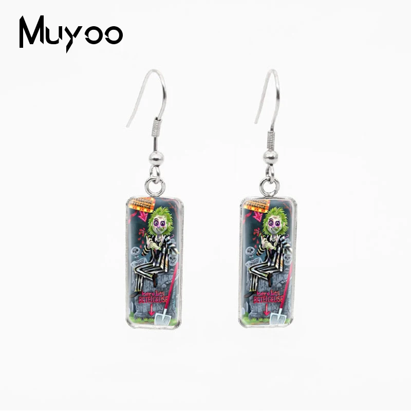 Новинка 2021, прямоугольные серьги-Крючки в виде забавных персонажей фильмов жуткости от Beetlejuice, картины ручной работы