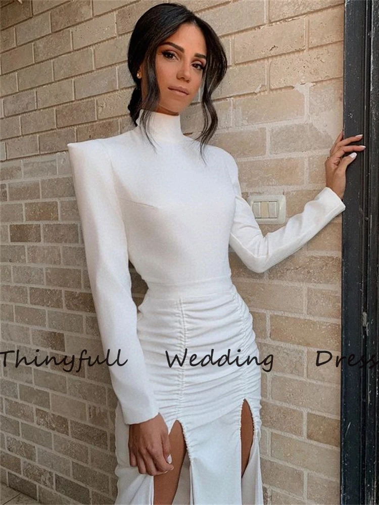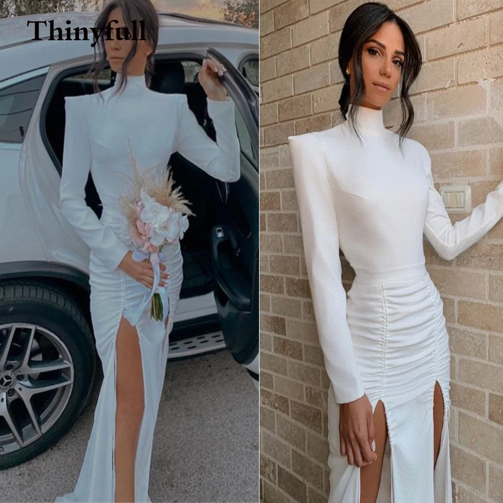 Thinyfull Свадебные платья с длинным рукавом и высоким воротником, Пляжное Платье в стиле бохо, свадебные платья принцессы, свадебное платье, платье