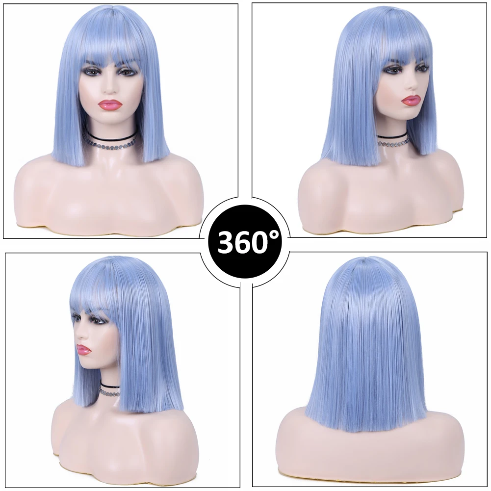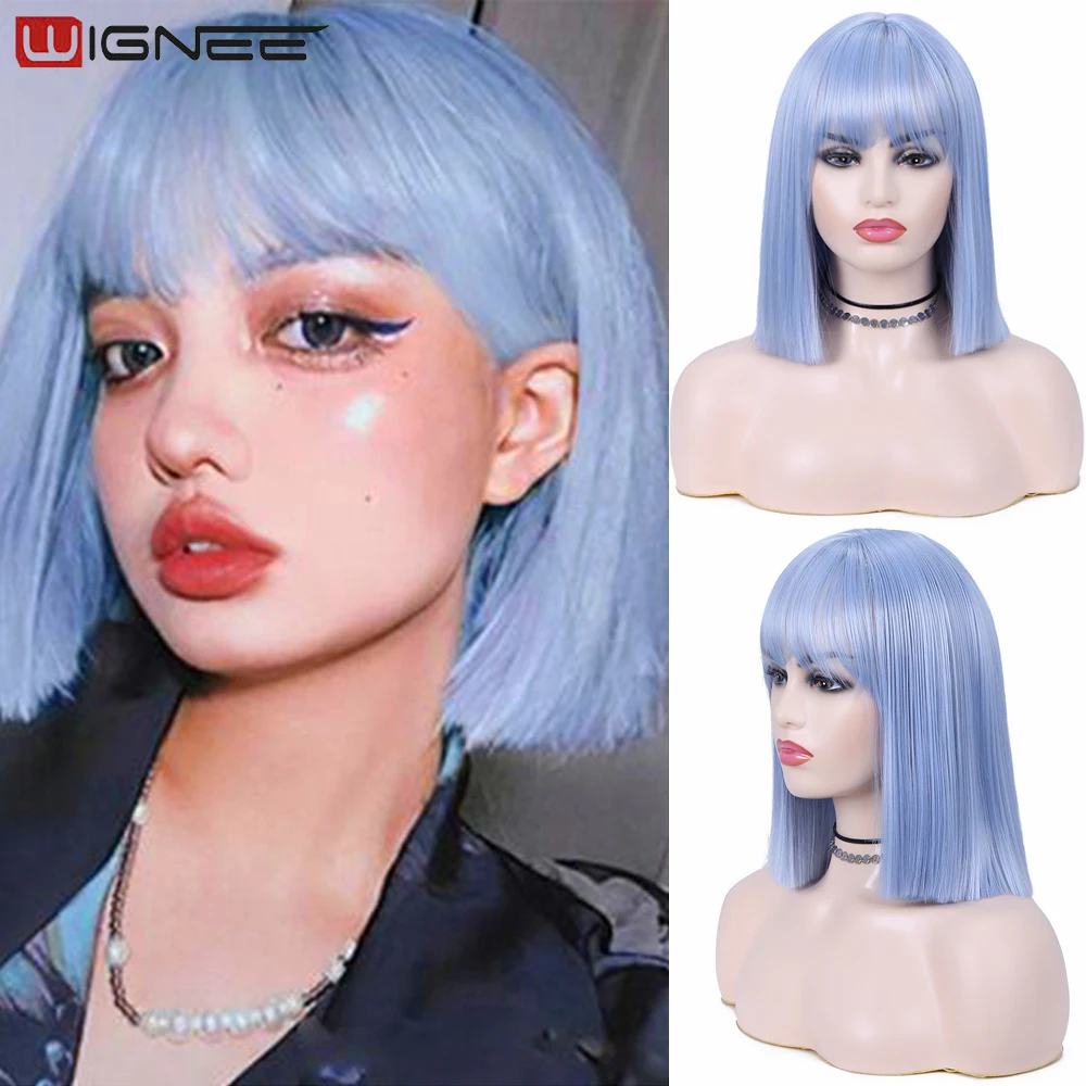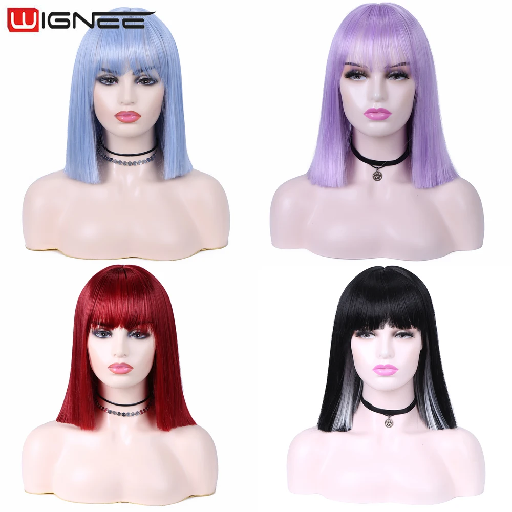 Wignee прямой парик синтетические Короткие парики с челкой для женщин боб парик Красный Фиолетовый Черный Синий Косплей парики длина плеча
