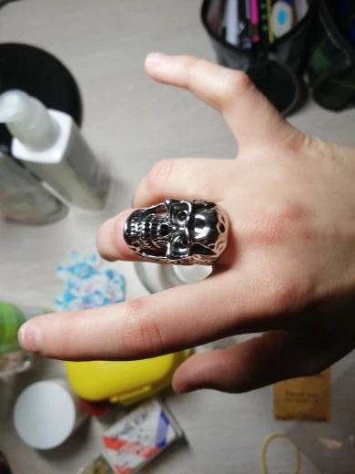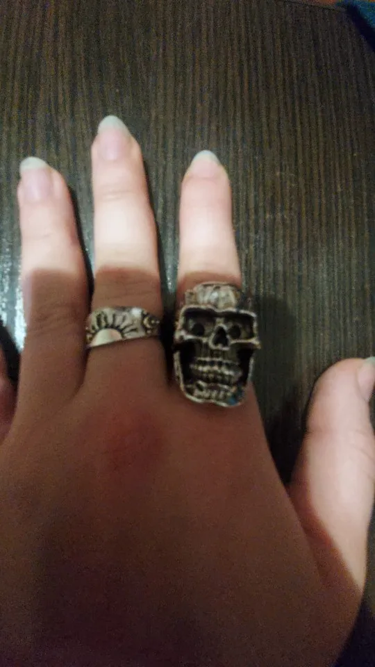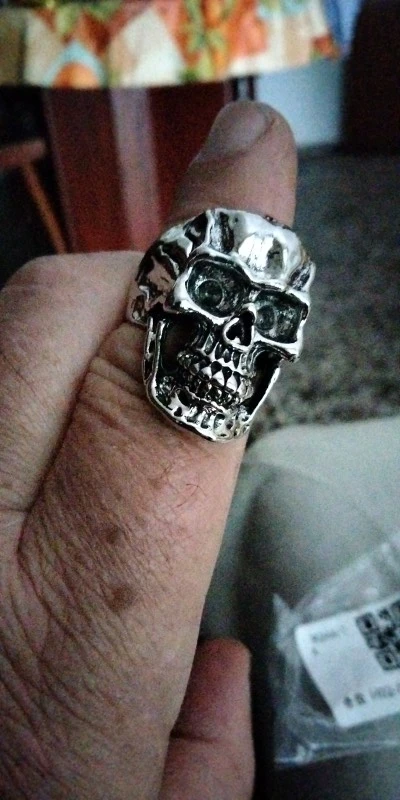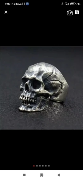 Вообще не то что на картинке, отдаленно похоже, но глянцевое, в глазницах даже есть места под крепление камней, а я видел на али такие же кольца но с стекляшками) одна форма для отливки для двух разных колец?)