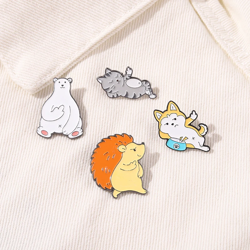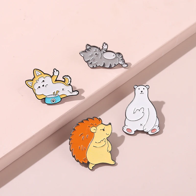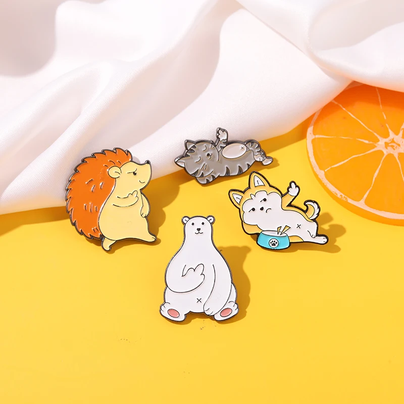 Эмалированная брошь в виде животного, металлическая серия, Милая брошь в виде ежика, собаки, кошки, белого медведя, значок на свитер, сумку, лацкан, одежда, подарок для детей, ювелирное изделие