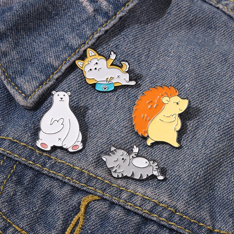 Эмалированная булавка среднего пальца в виде животного, забавные бр...
