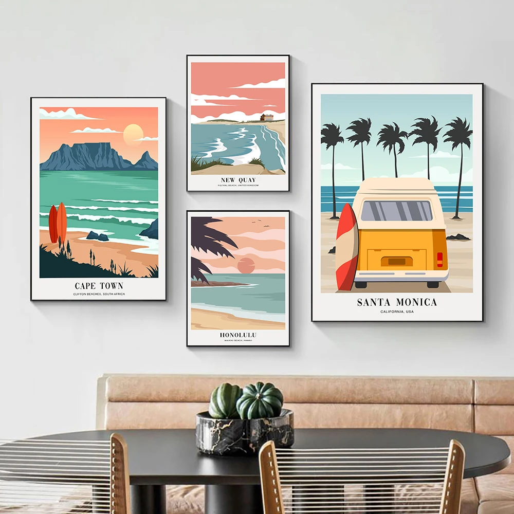 Пейзаж города, холст, настенная живопись, плакат и принты, пляж Нью-Йорк, минималистические постеры для путешествий для гостиной, Декор для дома