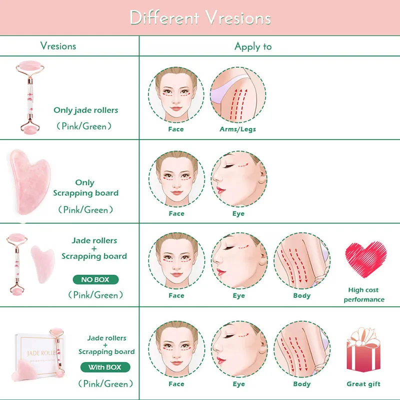 Массажер гуаша нефритовый с натуральным розовым кварцем, набор для массажа лица и тела, Нефритовый камень для лифтинга лица, инструмент для красоты и массажа