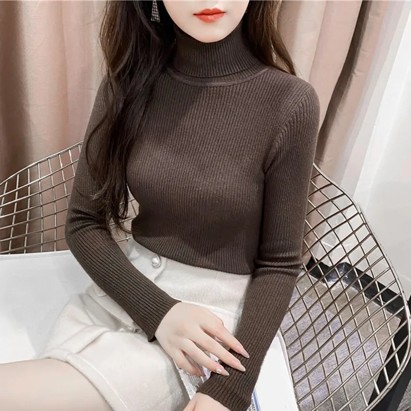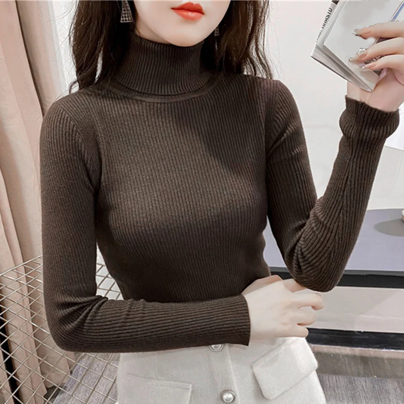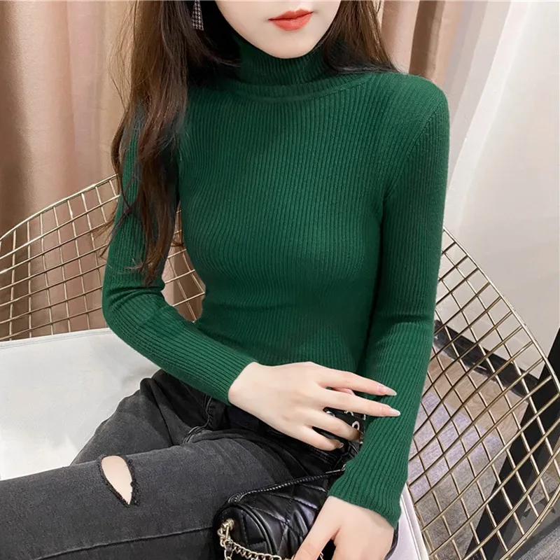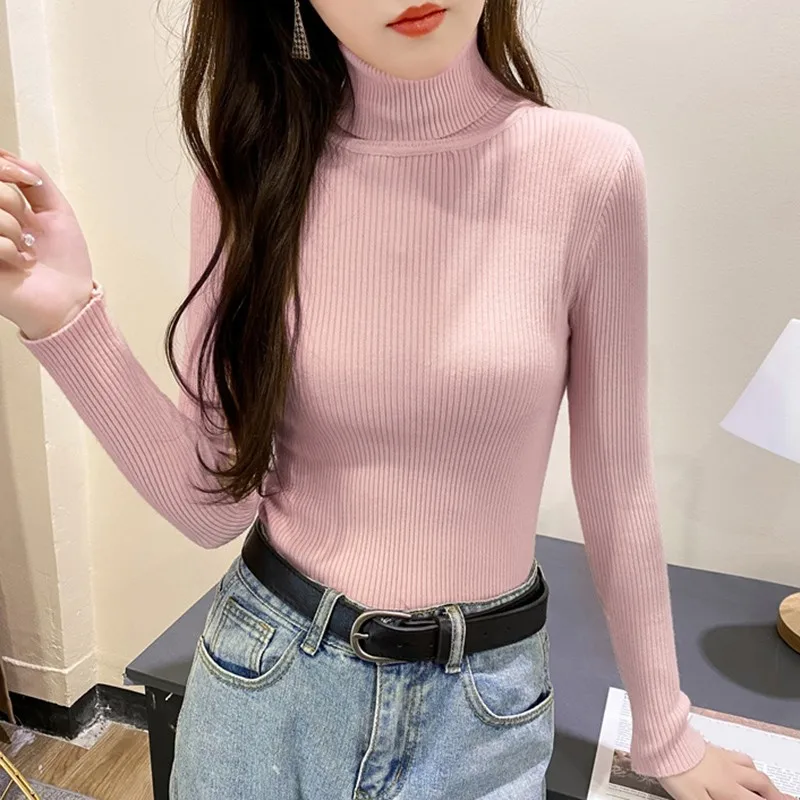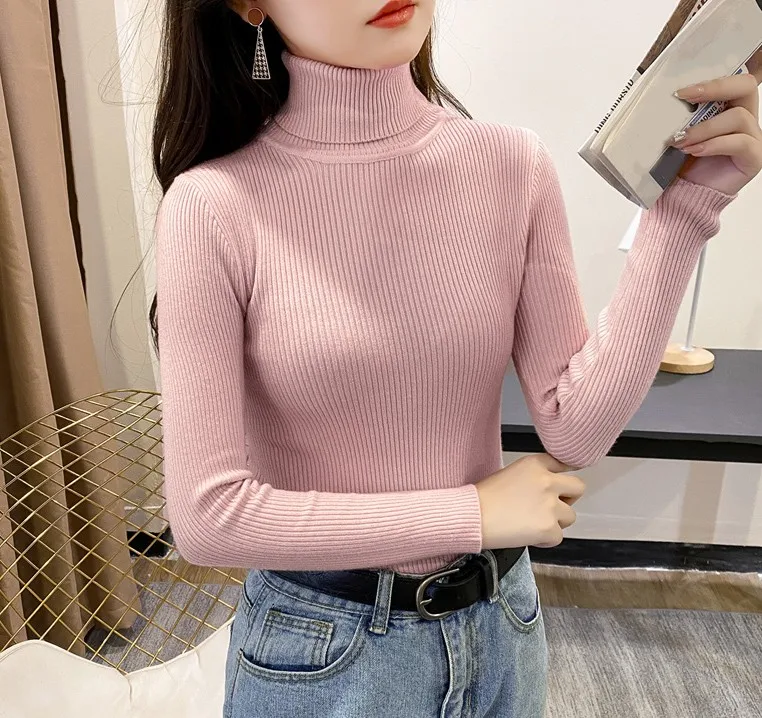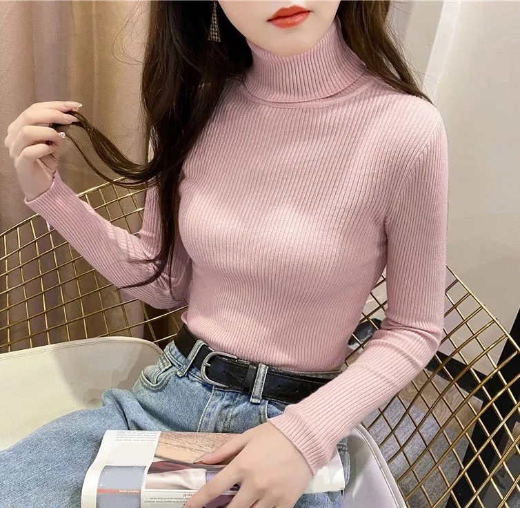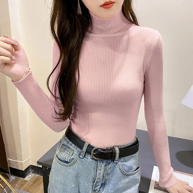 Свитер женский трикотажный, с высоким воротником, однотонный, осенне-зимний