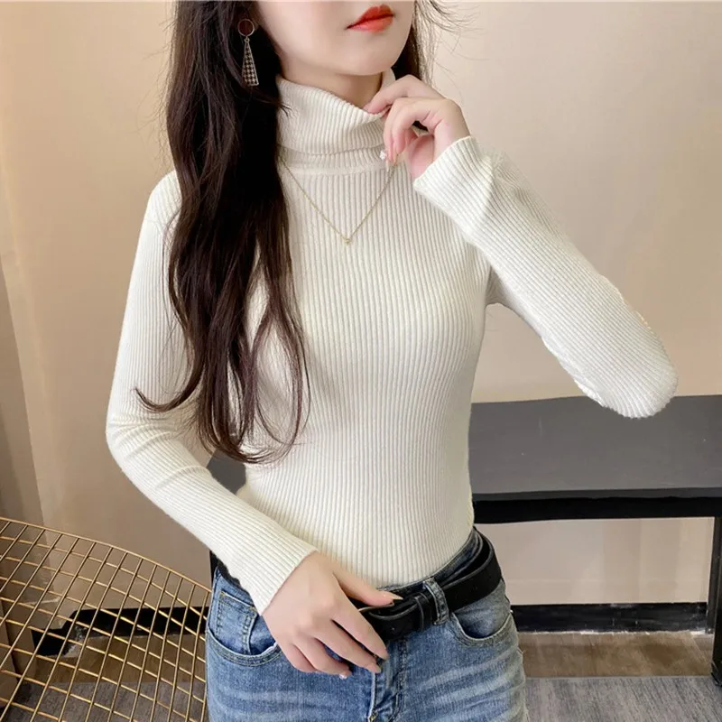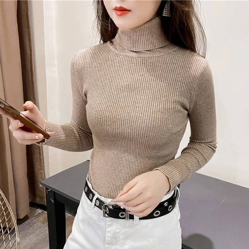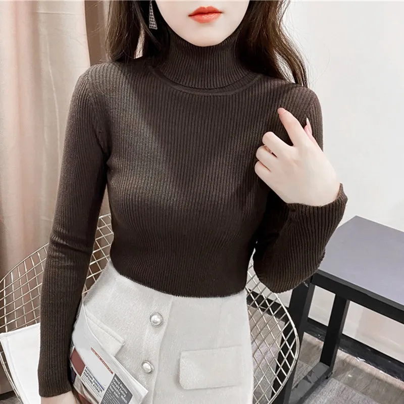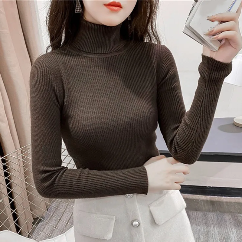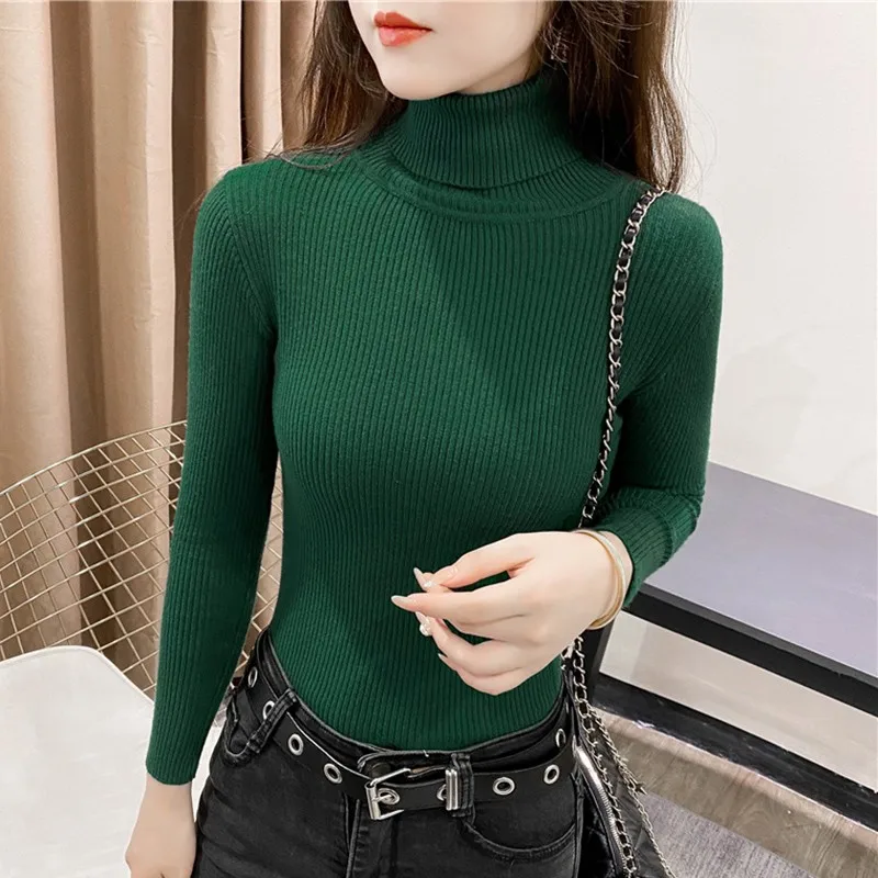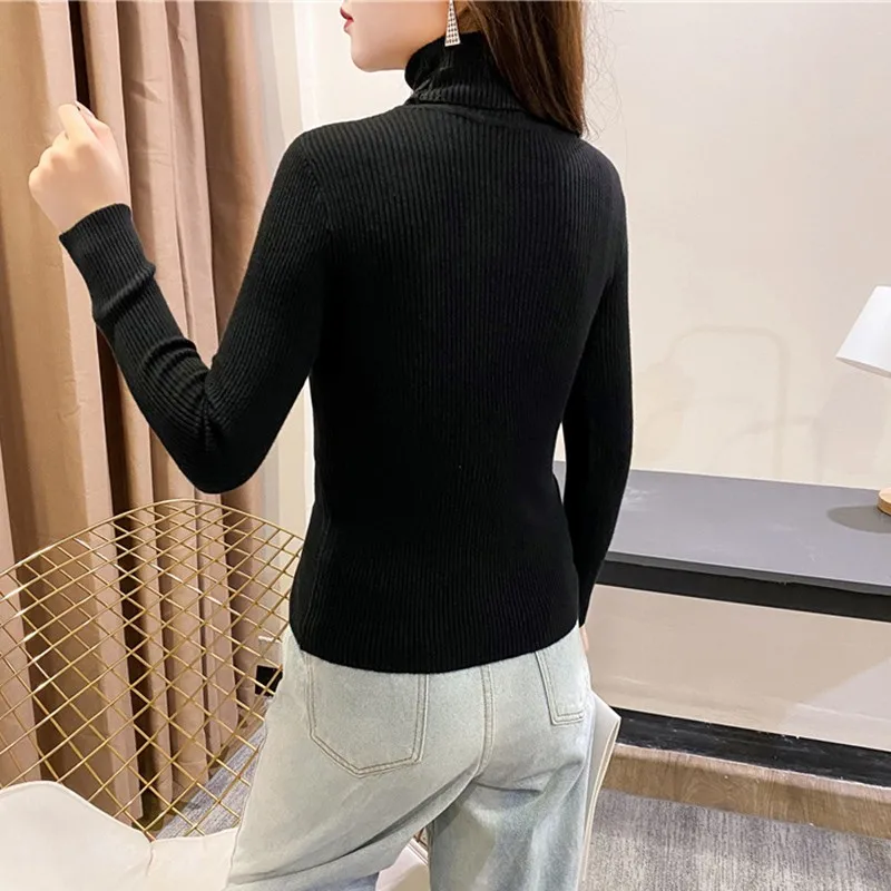 Свитер женский трикотажный, с высоким воротником, однотонный, осенне-зимний