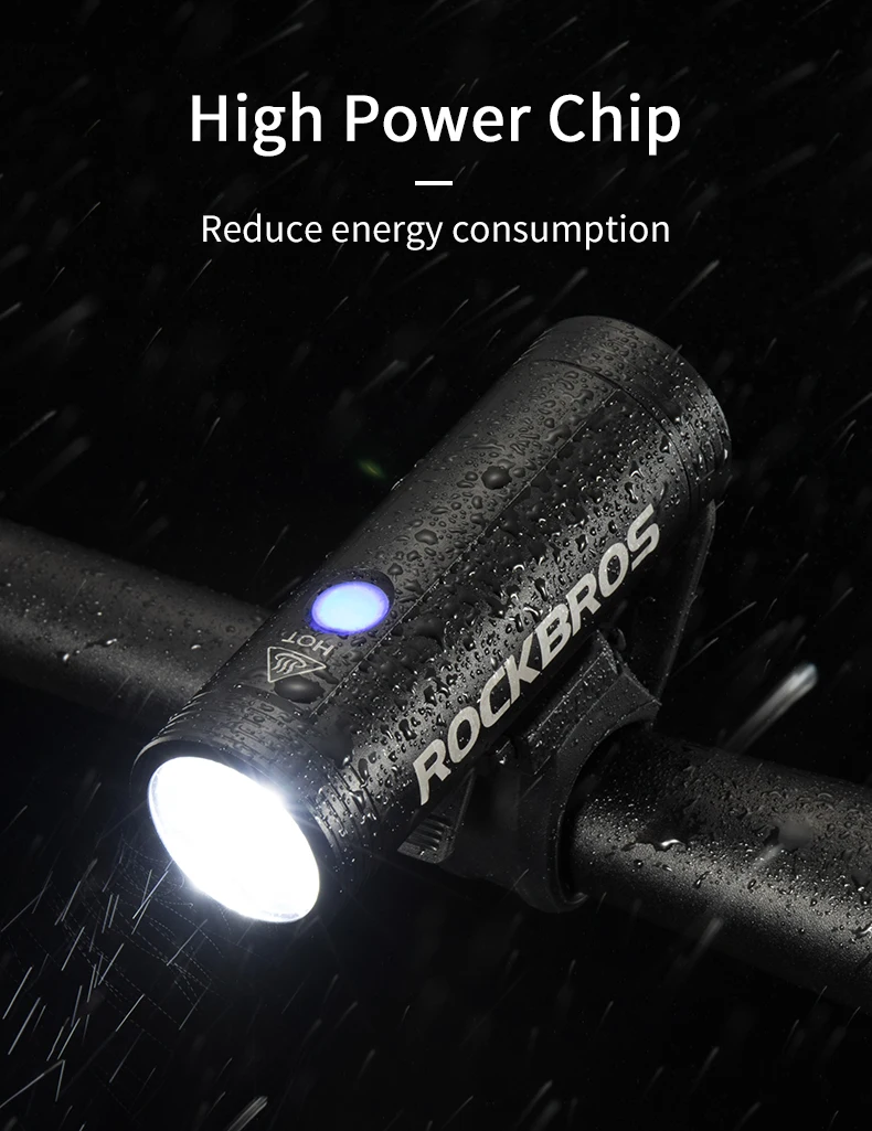ROCKBROS велосипедный передний светильник с защитой от дождя, USB Перезаряжаемый велосипедный светильник, велосипедный головной светильник светодиодный, 2000 мА · ч, флэш-светильник для горного велосипеда Информация о продукте: