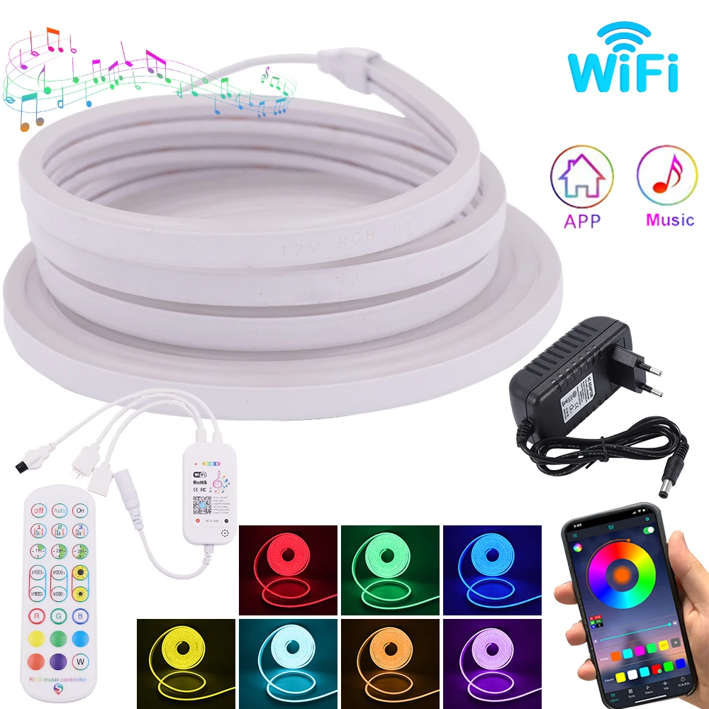 12V WiFi RGB Светодиодный светильник с Tuya Smart Life App контроль гибкий неоновый знак музыка Светодиодная лента Водонепроницаемая неоновая лента подсветка светильник