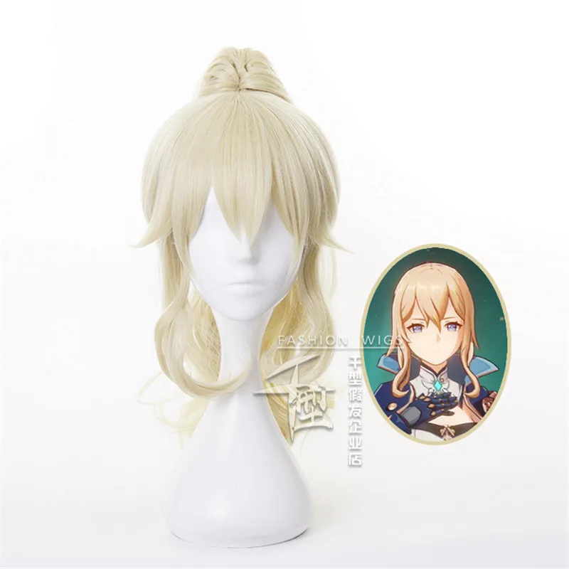 Genshin Impact Jean косплей парик блонд клип конский хвост Жаростойкие синтетические волосы Peluca Аниме Косплей парики + парик Кепка